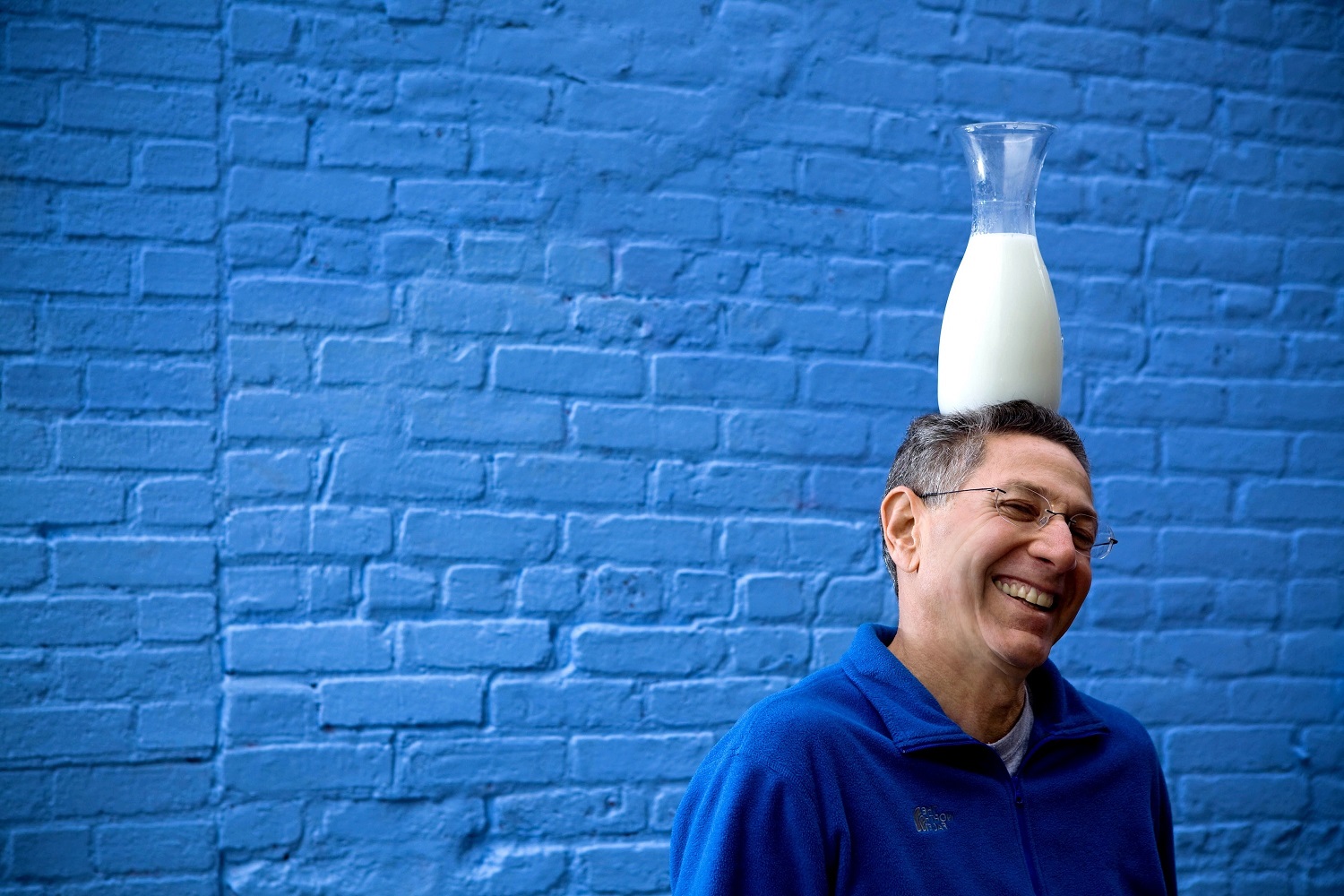 Ashrita Furman memecahkan rekor berlari dengan menjaga botol susu selama tujuh menit 47 detik. Tapi kenapa harus botol susu ya?