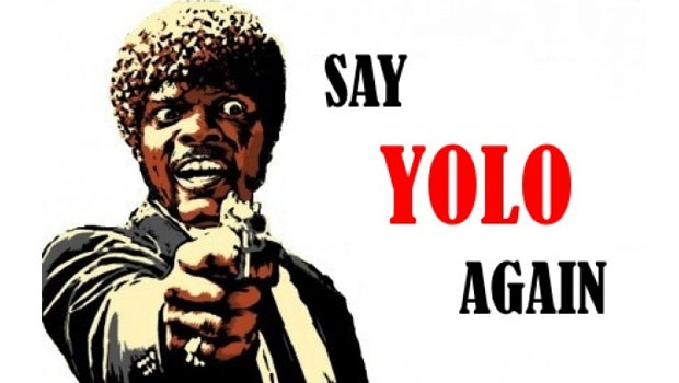YOLO singkatan dari You Only Live Once, yang mewakilkan tindakan yang nekat gitu deh. Misalkan lagi panas terik di siang bolong, kamu nyebur ke air mancur di taman. Terus pake caption “Yolo”, yowman.