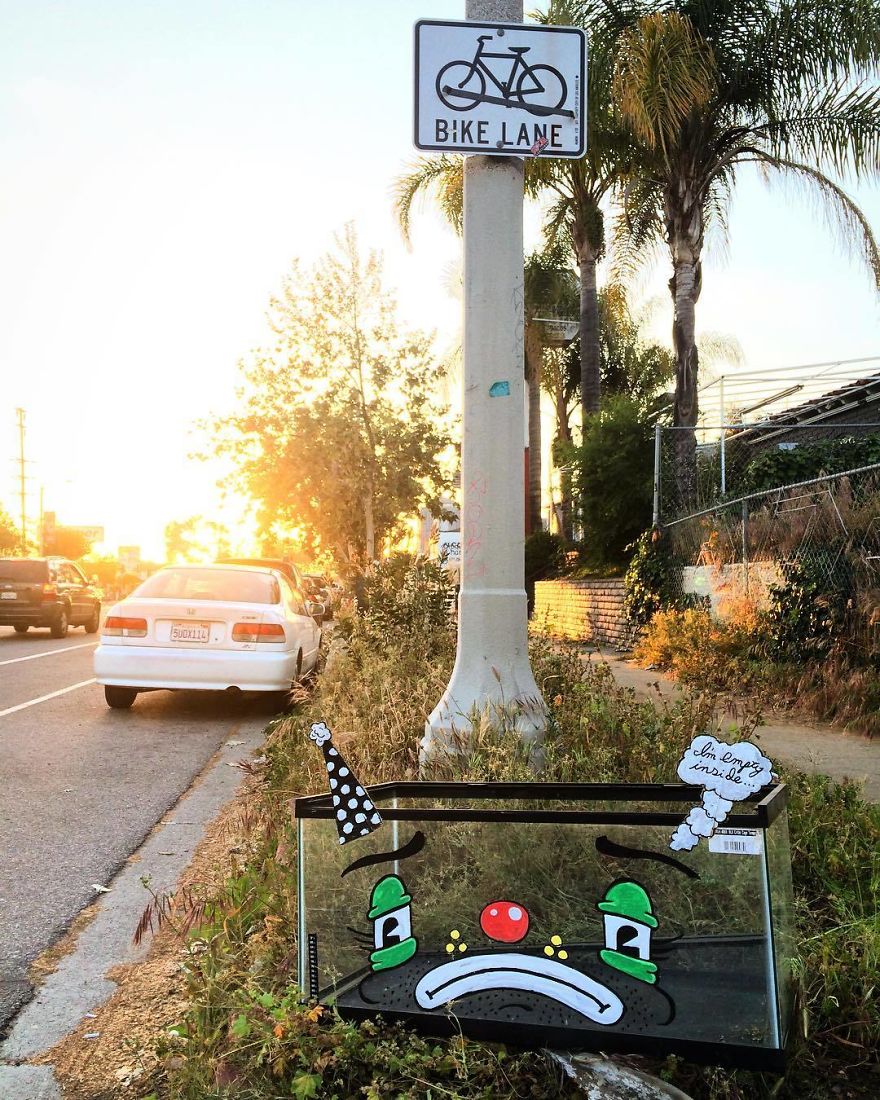 Yang Penting Heppiii. Seniman sejati pasti nggak pernah kehabisan ide untuk berkarya. Termasuk berkarya melalui media apapun. Bahkan, barang berkas sekalipun. Seperti yang dilakukan oleh seniman jalanan asal Los Angeles ini. Ia menyulap barang-barang bekas, dan gokilnya lagi, setelah barang bekas itu ia lukis malah nampak seperti benda hidup yang memiliki ekspresi. Kayak apa sih hasilnya? Cekidot! (YPH/MM)
