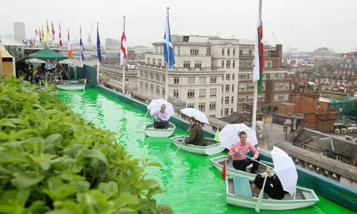 Rooftop Lake di London ini dibangun lengkap layaknya sebuah danau lho. Bahkan kamu bisa mendayung perahu di atap gedung sebuah departement store Gordong Selfridge ini.