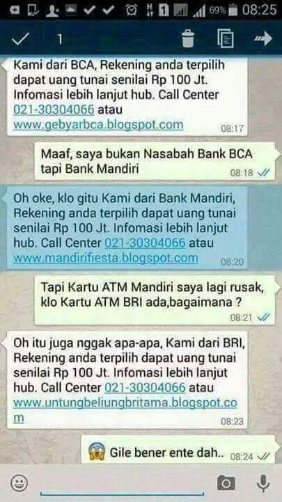SMS penipuan seperti ini diterima hamper semua pengguna ponsel setiap hari. Meski demikian, masyarakat sepertinya sudah pintar dan paham tentang SMS penipuan dengan motif seperti ini.