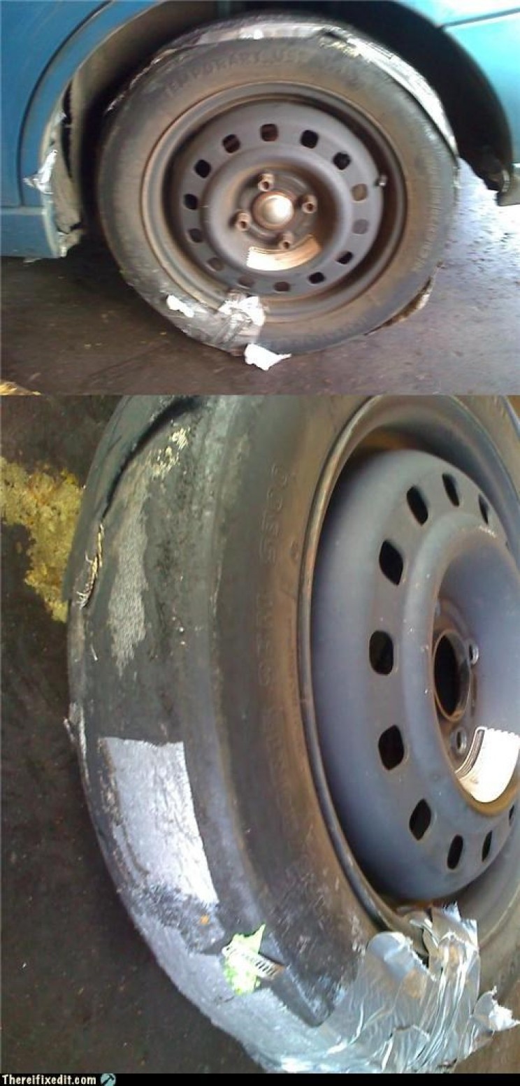 Hampir sama dengan tipe orang di atas, tapi selevel lebih tinggi, orang-orang di bawah ini menemukan solusi kreatif yang natural banget saat mengalami ban kempes atau rusak. Prinsipnya walaupun ban rusak, harus tetap bergerak. Idenya itu lho, gokil dah, cek yuk.
