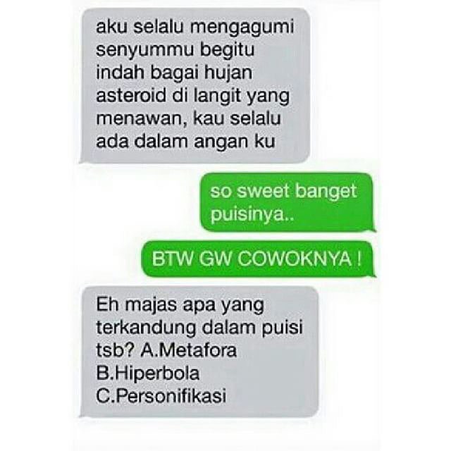 Yang Penting Heppiii. Bagi sebagian orang yang belum punya pasangan, biasanya akan berjuang dengan cara apapun buat ngedapetin seseorang untuk jadi gebetan atau pacar. Entah dengan ngajakin makan, nonton, piknik, atau apapun deh yang penting bisa dulu buat pdkt. Tapi gimana nasib para jomblo, yang baru mulai usaha buat pdkt aja udah amsyong, gimana mau dijadiin pacar atau gebetan ya. Nah berikut ini ada beberapa meme tentang amsyong momen saat berusaha ngedeketin calon gebetan yang gagal total dengan berbagai macam penolakan dan rintangan. (YPH/MM)