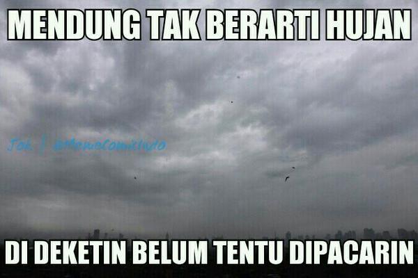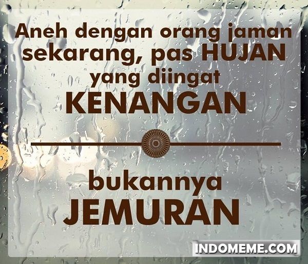 Yang Penting Heppiii. Udah mulai musim ujan nih guys, dan kayanya bakal sering ujan sampe Januari nanti. Jangan salah, hujan sekarang punya banyak makna, sampe jadi inspirasi karya seni juga loh. Tapi ada juga yang jadi bahan candaan, kaya yang berikut ini: