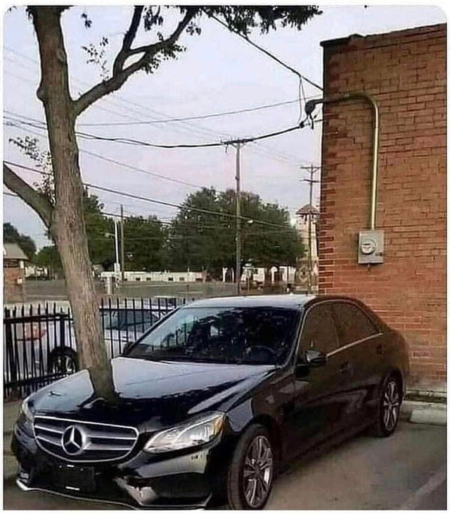 - Ini sih bikin spot jantung yang punya mobil, dikira ketusuk pohon beneran