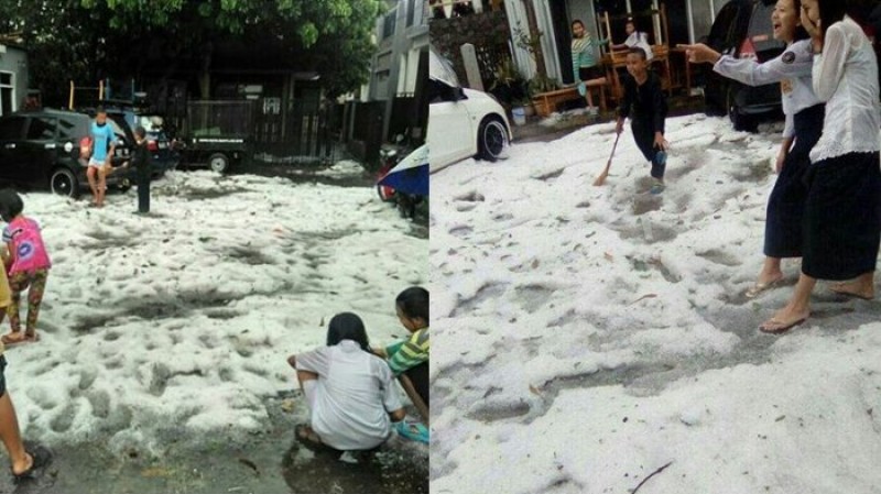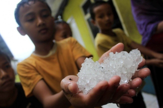 Tapi hal yang berbeda terjadi baru-baru ini, beberapa daerah di Indonesia diguyur hujan es, yang bikin kawasannya seperti tertutup salju. Tentu saja hal ini bikin heboh masyarakat, bukannya masuk rumah biar nggak kedinginan, mereka malah asyik bermain dengan ‘salju’.