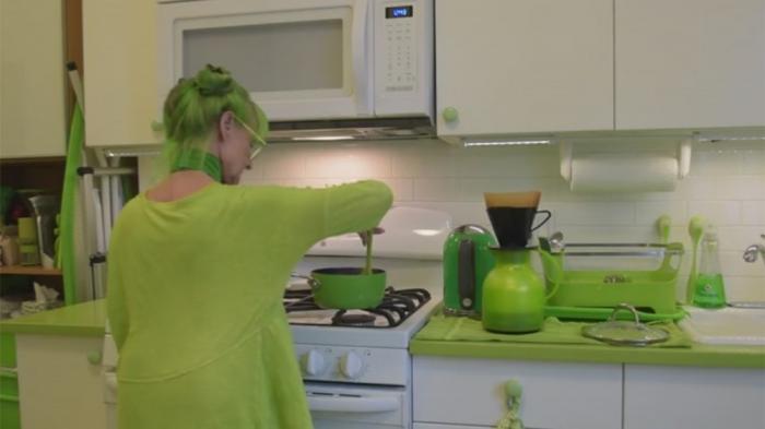5. Dapurnya pun serba hijau, biar semakin betah di dapur