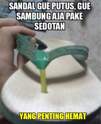 Yang Penting Heppiii. Hampir semua orang di Indonesia pasti punya sandal jepit, bisa dibilang udah jadi ciri-ciri kita. Karena selain memang harganya yang terjangkau, sandal jepit juga nyaman dipakai. Tapi karena model, bentuk, dan warna yang sama, biasa rawan tertukar. Fakta-fakta tersebut, ternyata memancing kreatifitas netizen untuk bikin meme tentang sandal jepit. Intip yuk, kamu pasti ngangguk sekaligus tepuk tangan, karena memang se-relate itu. Mungkin kamu juga pernah punya.