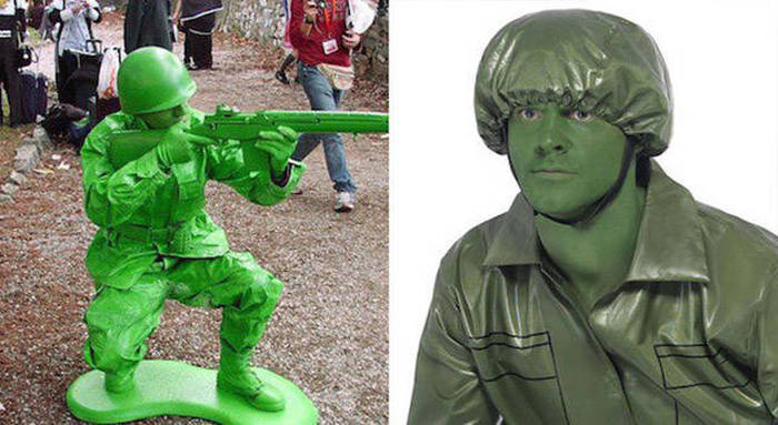 Kayanya dia bingung antara mau jadi Hulk atau tentara plastik. Source