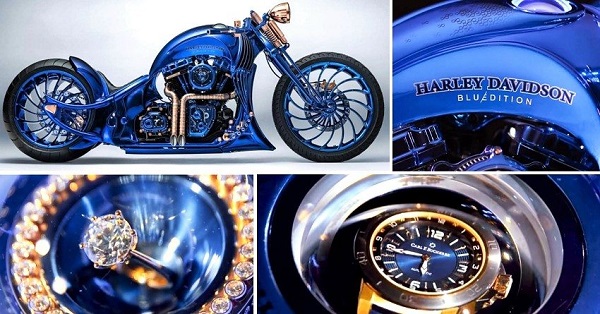 Motor yang menyilaukan mata duniawi ini dibandrol seharga 1,79 juta USD atau sekitar Rp. 23 Milyar. Motor yang agak bikin kaget ini adalah edisi spesial dari brand motor kenamaan Harley Davidson yang dinamakan “Blue Edition” atau edisi spesial khusus dengan corak warna biru, motor ini juga di klaim sebagai motor paling mahal di dunia.