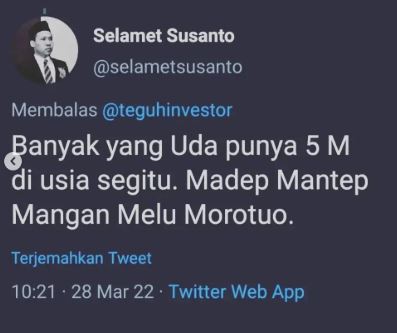 Yang Penting Heppiii. Di Twitter, ada seseorang yang bikin statemen, “Umur 30 kalo belum punya 1 M itu kebangetan. “ Dan netizen yang sangat budiman dan rupawan, tentu menanggapinya dengan sangat cemerlang. Penasaran, kira-kira pada punya beneran nggak sih? Langsung aja simak 1 M versi netizen berikut.