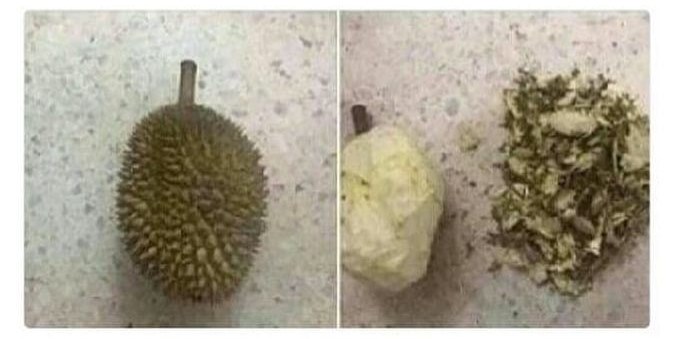 - Baru liat orang ngupas durian versi terbaru hahaha