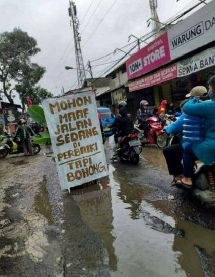 Yang Penting Heppiii. Jalan raya adalah infrastruktur paling penting bagi warga, karena mobilitas mereka bisa terlaksana dengan adanya jalan yang mulus. Karena itu, harusnya jalan raya dibangun dengan bahan berkualitas agar hasilnya bisa tahan lama. Sayangnya nih, masih banyak jalan yang jauh dari kata mulus, udah gitu nggak kunjung diperbaiki pula. Hal ini tentu saja mendatangkan protes keras dari warga, sampai-sampai melakukan hal-hal yang agak diambang batas, seperti yang terlihat dalam sederetan potret berikut.