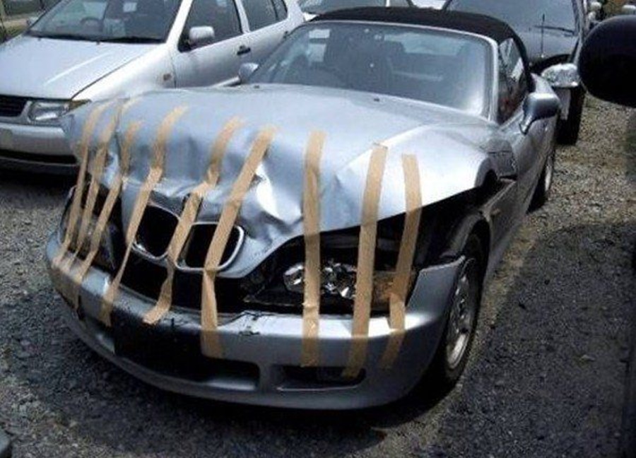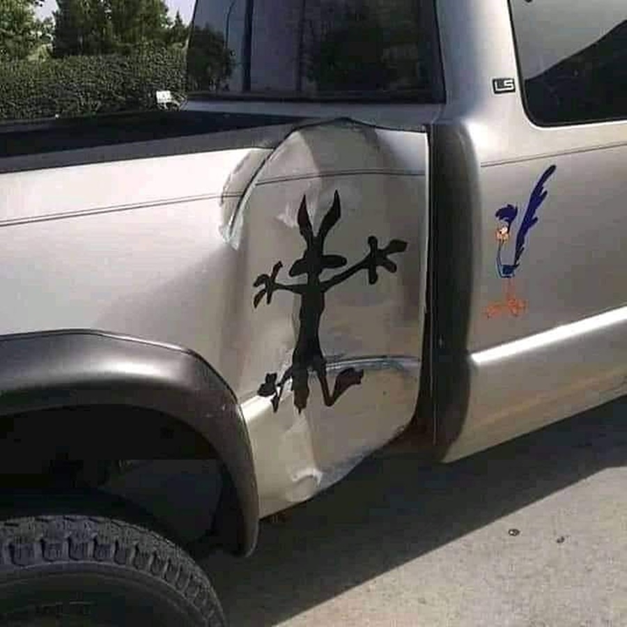 Seperti dertan potret dibawah ini yang mereparasi mobilnya. Alih-alih berharap mobilnya jadi bagus tapi malah terlihat aneh.