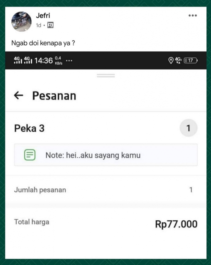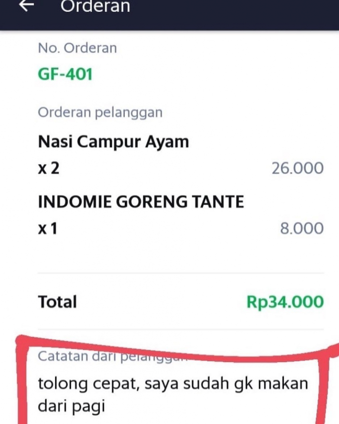 Cara pemesanannya pun sangat mudah. Kita hanya perlu memesan melalui aplikasi, lalu pesanan kita akan langsung diproses oleh driver Ojol, dan Agar pesanan nggak salah, ada kolom catatan yang bisa kita isi.