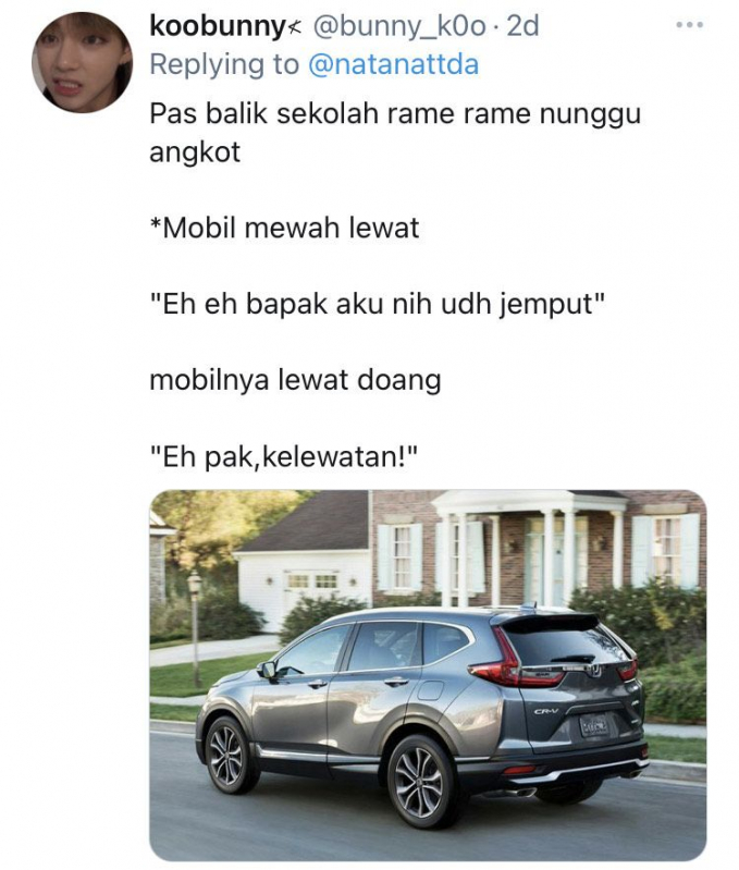 - Mending kelewatan dari pada nanti berenti dikira penculik anak hahaha