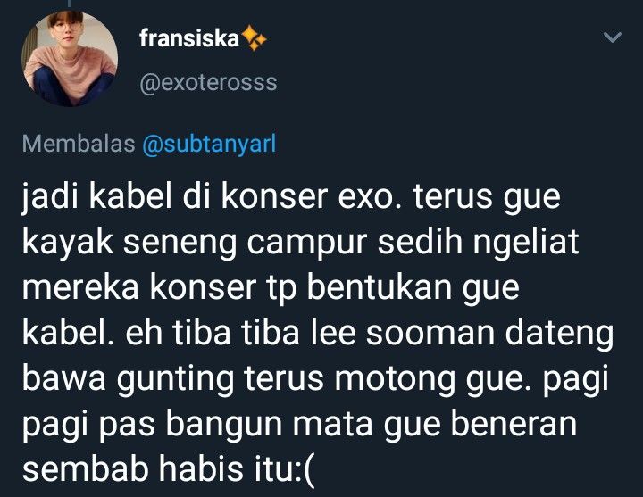 - Meskipun hanya jadi kabel tapi yang penting bisa nonton exo