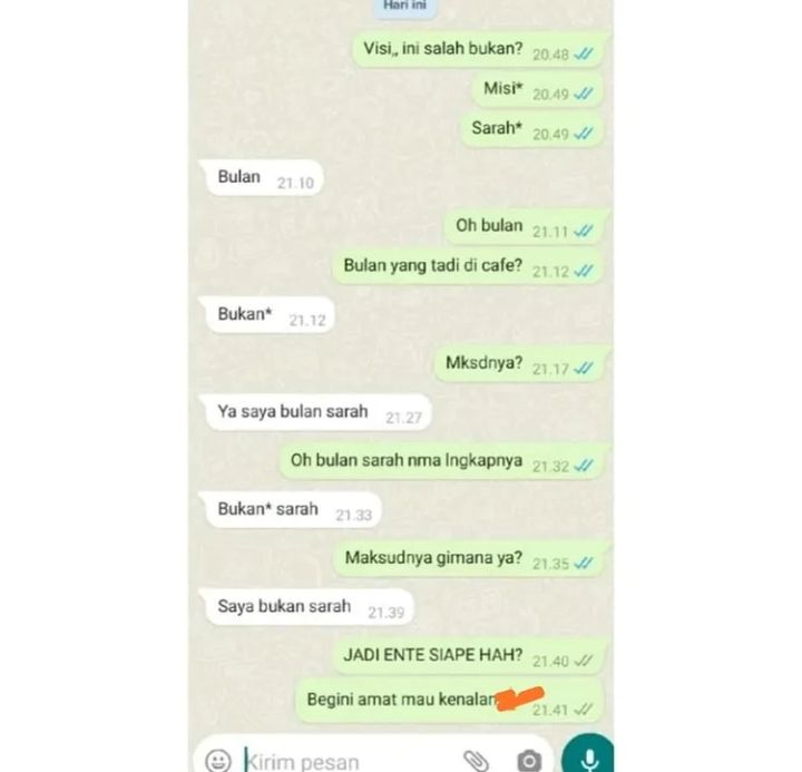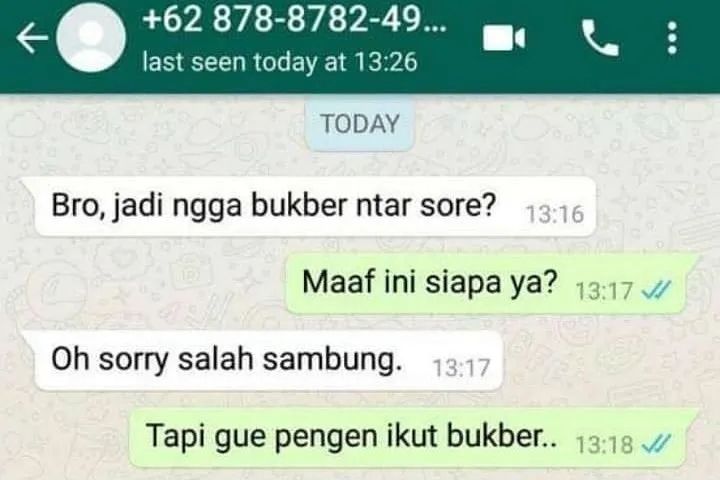 Seringkali salah sambung dialami ketika terjadi kekeliruan saat menyimpan nomor yang akan dihubungi. Hal ini tentunya bikin malu dan bikin bingung orang lain. Seperti deretan chat dibawah ini yang salah sambung dan bikin kita ngakak melihatnya.