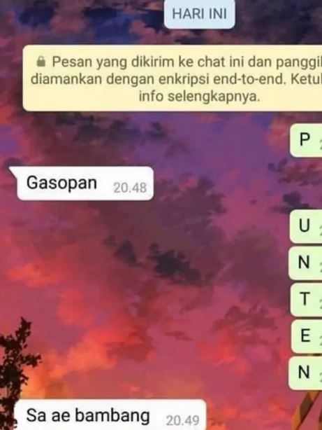 - Suka sebal sama orang yang sering chat 'P' di awal? Tapi kalau ini ngelesnya boleh juga.
