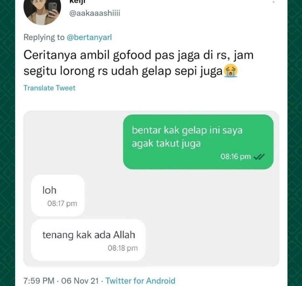 Sebagai driver ojek online terkadang memang harus menjalani kehidupan yang keras. Terkadang mereka harus rela pulang malam banget, alias cari orderan hingga tengah malam untuk mencari nafkah. Meski begitu, ada saja momen yang tak terduga dialami oleh driver ojol saat dapat orderan malam hari. Seperti potret dibawah ini yang bakal bikin geleng-geleng melihatnya, penasaran? Yuk Simak deretan chat lucunya..