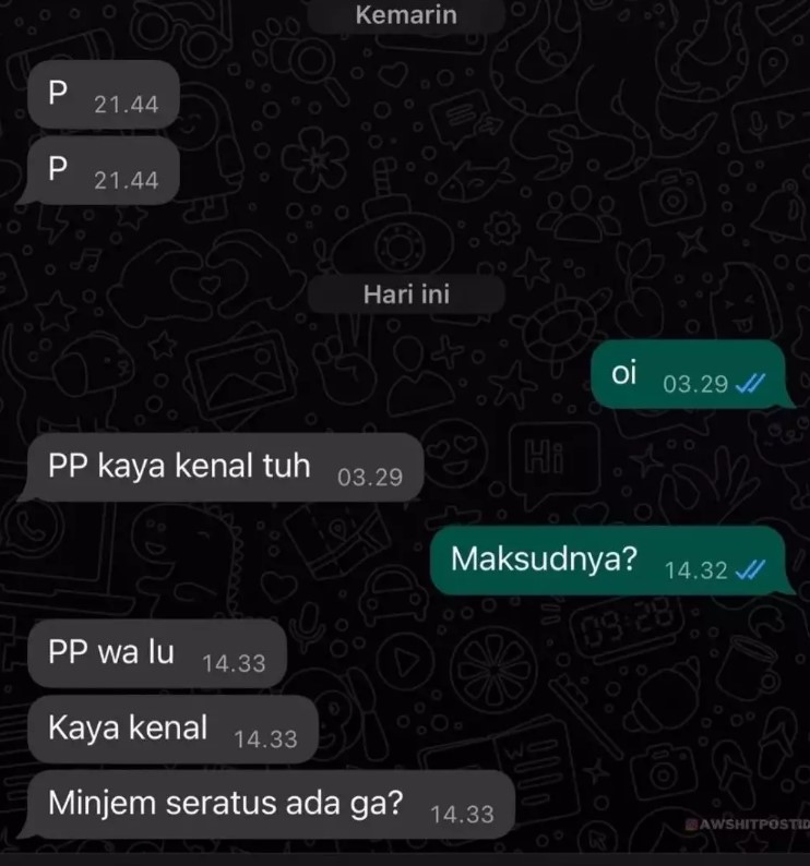 “Pinjam seratus dulu” memberikan gambaran kepada mereka yang sering meminjam uang. Ternyata ada teknik lain yang tidak terduga dalam meminjam uang. Seperti deretan berikut ini..