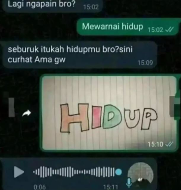 Yang Penting Heppiii. Setiap orang pasti punya satu teman yang kelakuannya random banget. Mereka suka ngechat tanpa alasan penting, suka kirim reels lucu yang sebenernya cuma bikin dia sendiri ketawa. Di satu sisi, punya teman kayak gini bisa jadi hiburan di tengah-tengah rutinitas yang kadang ngebosenin. Tapi kadang-kadang, chat yang nggak jelas ini juga agak ganggu, kan? Mungkin kamu pernah ngalamin hal ini. Kalau belum, yuk intip deretan chat kocak random dari temen koplak di bawah ini.