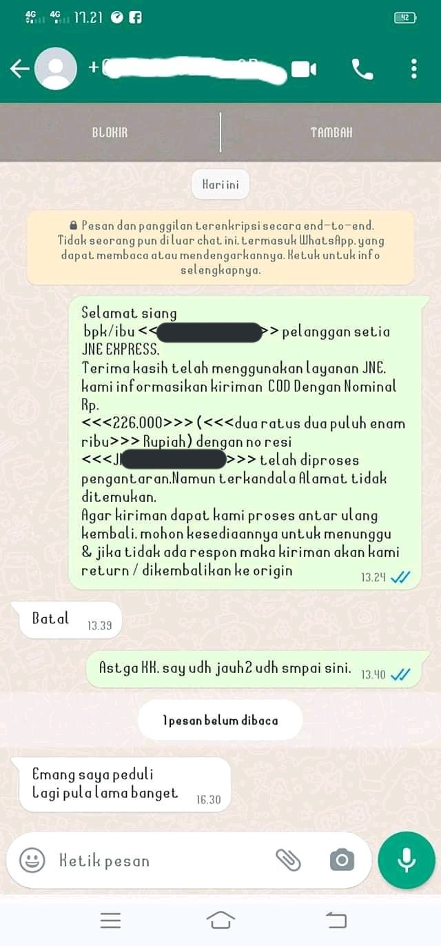 Di Indonesia, metode pembayaran Cash on Delivery (COD) masih banyak digunakan oleh masyarakat. Namun, di sisi lain terkadang ada saja oknum pembeli yang menyalahgunakan metode pembayaran ini dan melakukan pembatalan pesanan secara tiba-tiba. Kalau sudah begini, kurir jadi pihak yang dibuat pusing. Seperti beberapa orang ini yang nggak mau membayar pesanannya setelah dihubungi oleh para kurir. Bikin esmosi jiwa lihatnya..