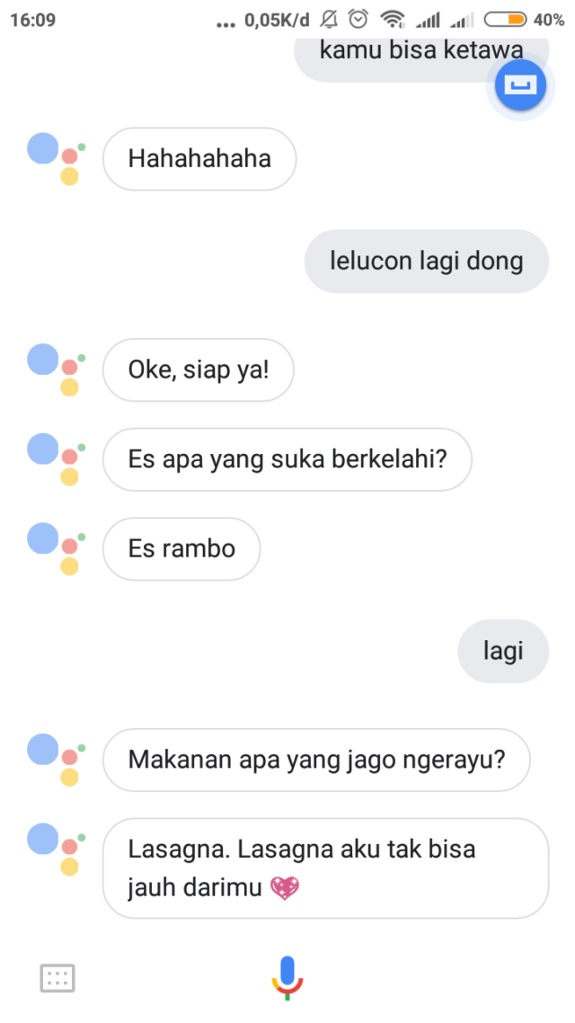 tapi selain itu ternyata kemampuan Google Assistant yang dicap "doyan ngobrol" ini bisa banget jadi temen kamu pas sepi, pasalnya jawaban yang diberikan bikin kita ketawa..