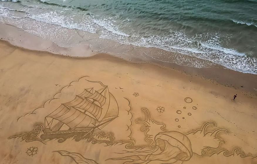 Yang Penting Heppiii. Menyulap pantai jadi kanvas lukisan? Why not! Ini nih yang dilakuin sama seniman asal Prancis, namanya Jben. Kabarnya dia udah bikin lukisan raksasa di berbagai pantai di Prancis. Awalnya, dia mulai proyek ini tahun 2013 di Pantai Barat Prancis.