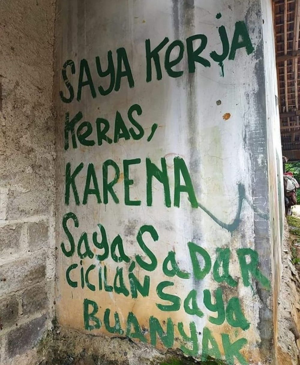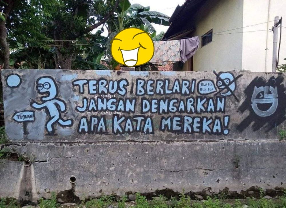 Corat coret tanpa izin memang perbuatna yang tidak diperbolehkan. Kendati demikian ternyata tidak semua coretan ditembok itu memiliki arti yang buruk. Banyak coretan yang memang bertujuan untuk menyindir pemerintah ataupun motivasi hidup.