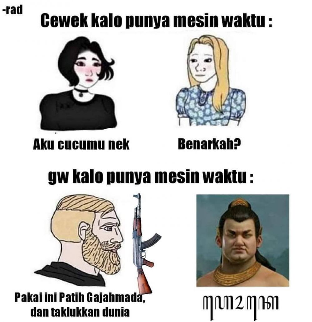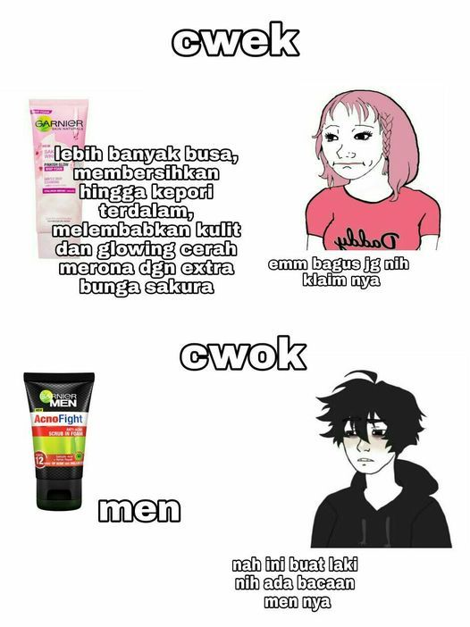 Yang Penting Heppiii. Dalam memandang segala sesuatu, akan selalu ada perbedaan di mata cowok dan cewek. Wajar banget sih, karena cowok dan cewek melihat semua hal dalam perspektif yang berbeda. Termasuk pas lagi ngayal, seperti yang tergambar dalam meme berikut ini. Menurutmu valid gak nih?
