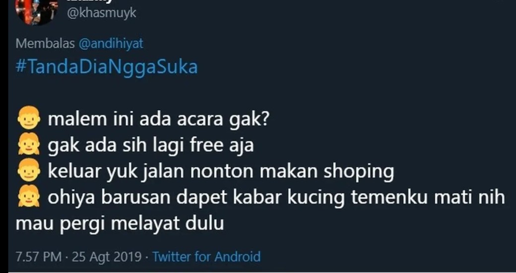 Mencari tahu jika seseorang tertarik atau menyukai kamu atau tidak bukanlah suatu perkara yang mudah. Itu sebabnya mengetahu sinyal-sinyal dari bahasa tubuh sangat membantu, Langkah utama yang kerap dilakukan dalam masa pendekatan ialah sering berkomunikasi lewat chat. Sayangnya tak semua masa pendekatan tersebut berakhir mulus, banyak pula loh yang justru ditolak terang-terangan atau secara halus oleh gebetan seperti beberapa potretnya berikut ini. Yuk Simak!