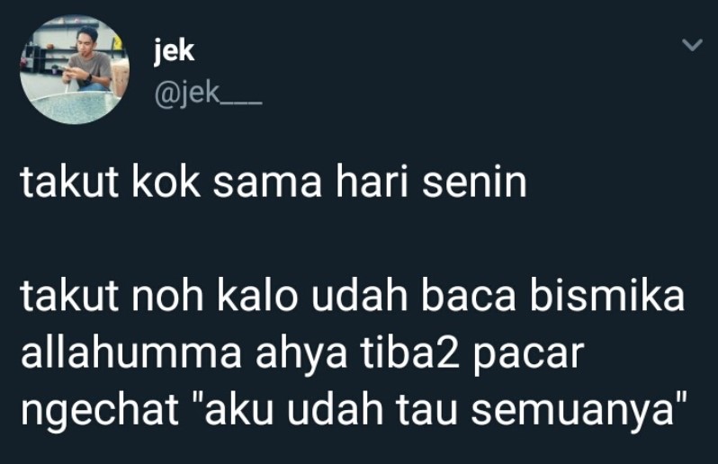 Bagi sebagian orang, hari Senin menjadi momok tersendiri. Wajar saja, sebab tak ada lagi kata santai dan bisa berleha-leha sesuka hati. Hal ini tentunya berbanding terbalik dengan hari Sabtu dan Minggu di mana kita bisa melakukan beragam aktivitas dengan bebas. Oleh karenanya, tak heran jika banyak orang mengeluh bahkan juga membenci hari tersebut. Sampai beberapa netizen membuat cuitan tentang ketakutan atau kebencian terhadap hari senin, penasaran? Yuk cek aja langsung..!
