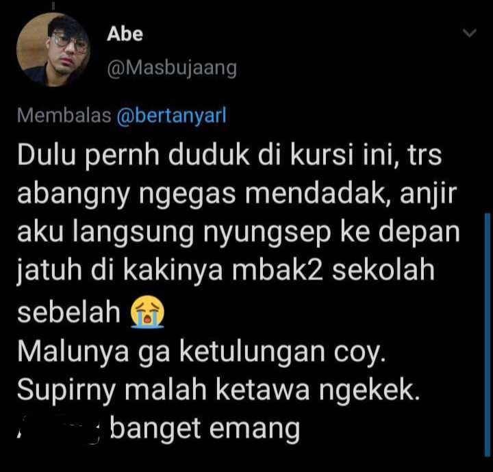 Kamu mungkin pernah mengalami kejadian lucu saat naik angkot, entah itu nyungsep saat sopirnya berhenti mendadak atau ketemu orang yang dikenal. Nah, cerita lucu dari warganet saat naik angkot berikut ini juga gak kalah seru, lho. Penasaranseperti apa?Langsung simak aja cerita lucu mereka, yuk!..