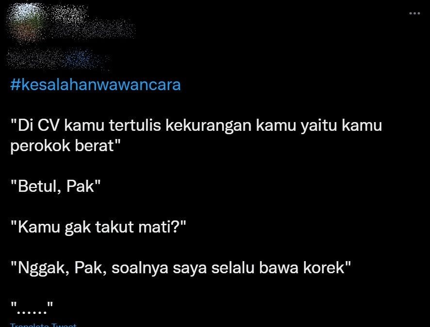 Sesi wawancara kerja memang sangat krusial. Jika jawaban kamu gak memuaskan, bisa jadi kamu gak bakal mendapatkan pekerjaan yang kamu impikan. Namun para warganet ini punya cerita kocak saat mereka salah memilih jawaban ketika sesi wawancara kerja. Ada yang beneran terjadi, ada juga yang sekadar candaan saja. Penasaran? Yuk, simak cerita kocaknya berikut ini!