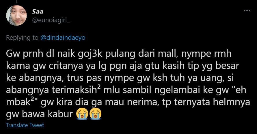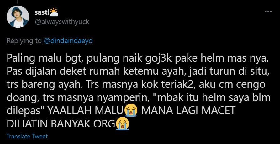 - Yang sering naik ojek online mungkin sering mengalami momen lupa copot helm