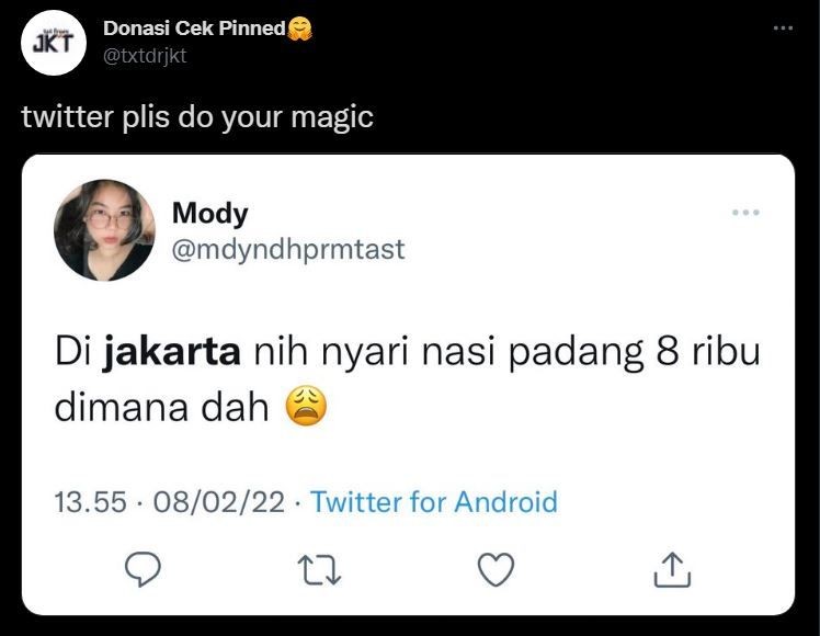 - Ada Netizen yang cari nasi padang harga delapan ribu di Jakarta