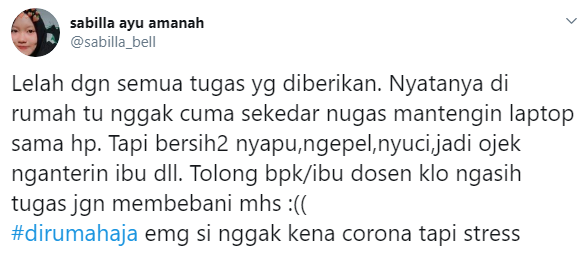 Yang Penting Heppiii. Beberapa bulan terakhir, kegiatan belajar mengajar offline ditiadakan, pandemi virus Covid 19 yang nggak kunjung selesai memaksa semua dilakukan dari rumah secara online. Mungkin semua pada awalnya mikir kalau sekolah atau kuliah dari rumah bakalan nyantai banget karena waktunya bisa fleksibel ternyata salah besar. Makin kesini, keluhan para siswa sekolah dan mahasiswa terkait cara pengajaran makin banyak. Gimana nggak, bukannya santai, tugas malah makin menumpuk. Dan hal itu memancing para mahasiwa untuk curhat di media sosial, kasian sih tapi di sisi lain juga kocak banget, cekidot guys.