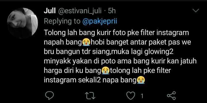 Yang Penting Heppiii. Baru-baru ini, hampir seluruh jasa pengiriman barang memberlakukan kebijakan untuk mendokumentasikan setiap paket yang sudah diterima oleh pemiliknya. Tapi, pengguna jasa kurir rupanya banyak yang belum paham sama aturan baru ini. Akibatnya, nggak sedikit yang kaget dan belum siap dengan penampilan mereka saat menerima paket. Beberapa konsumen sampai curhat di sosial media mereka ketika mereka terima paket dan harus dicekrek-cekrek sama abang kurir. Langsung simak deh, bengek banget.