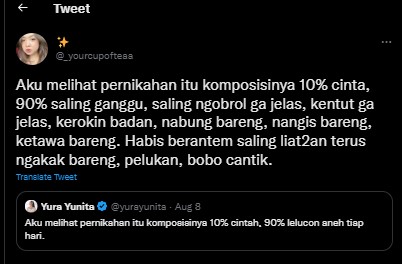 - Kalau diliat dari tweetnya kayaknya umur pernikahannya masih baru