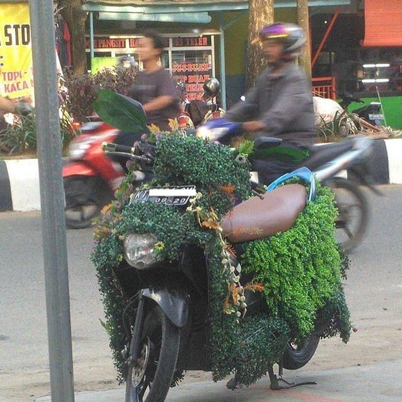 Buset dah, ini motor udah kaya tembok aja banyak tanaman rambat.