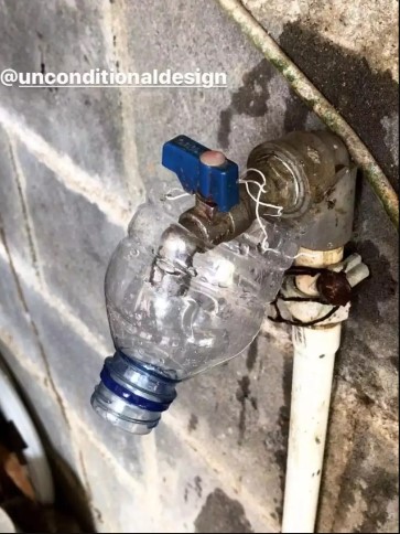 - Keran biru emang suka bikin air yang keluar gak karuan arahnya, tapi botol bekas punya solusi
