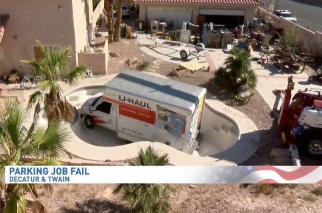 - Drivernya terlalu bersemangat sampai nyemplung di kolam renang.