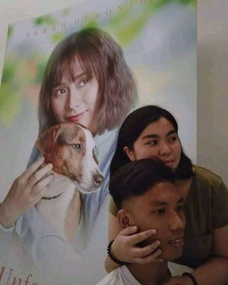 - Pose fotonya persis dengan poster yang ada di belakang.