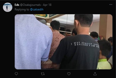 Ibadah seharusnya menjadi ritual yang sacral dan suci karenanya kita kadang di wajibkan memakai pakaian yang tidak hanya baik dan bersih saja, namun kita juga perlu mengerti konten dalam pakaian kita dan memperhatikan kelayakannya apakah cocok atau tidak digunakan untuk Ibadah. Kalo tidak nanti seperti beberapa portret yang telah kami rangkum berikut ini, entah mereka tidak tahu atau sengaja. Tapi yang jelas bikin cengar – cengir melihatnya