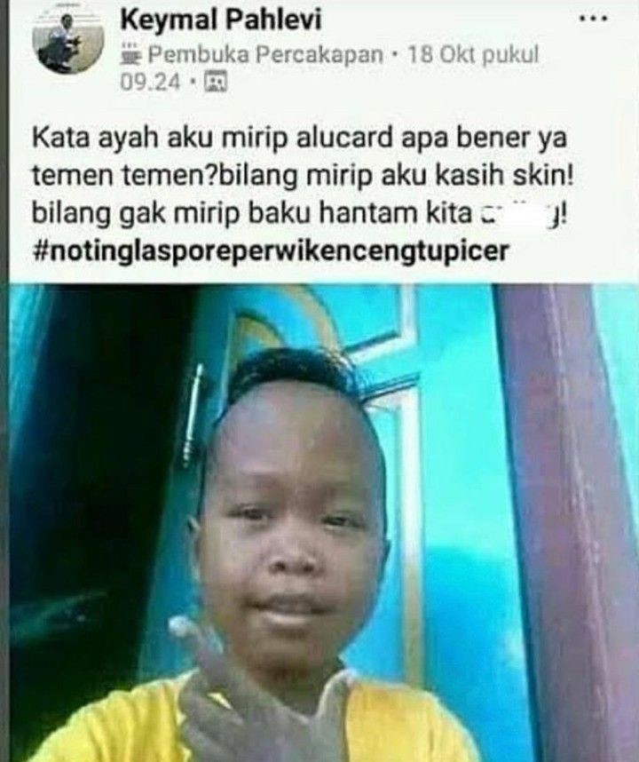 Mulai dari anak-anak hingga orang dewasa, kini nggak ketinggalan menggunakan media sosial. Entah sebagai wahana komunikasi dengan teman-teman ataupun sarana menambah wawasan. Nah, jika kita bicara soal tingkah orang saat menggunakan media sosial, tentunya banyak hal-hal lucu yang bisa bikin kita ketawa. Salah satunya adalah tingkah kocak bocil-bocil ini saat mengunggah status di media sosial facebook. Seperti beberapa potretnya yang telah kami rangkum berikut ini, dijamin bikin ngakak.