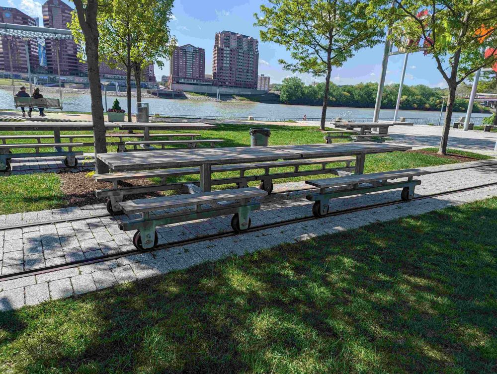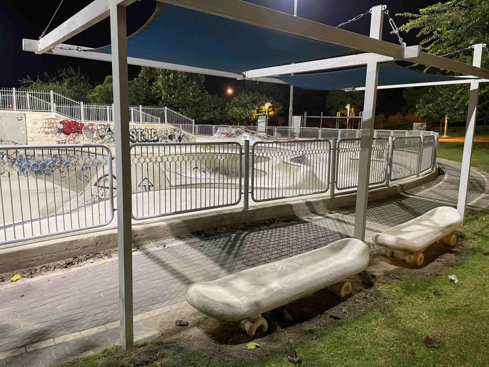 - Taman ini punya bangku dengan desain skateboard.