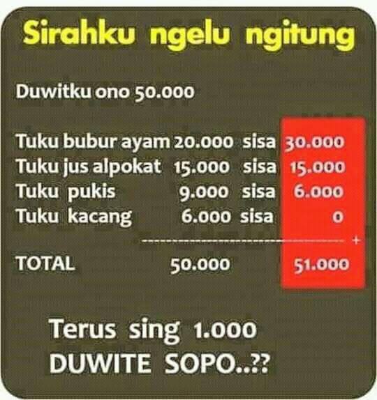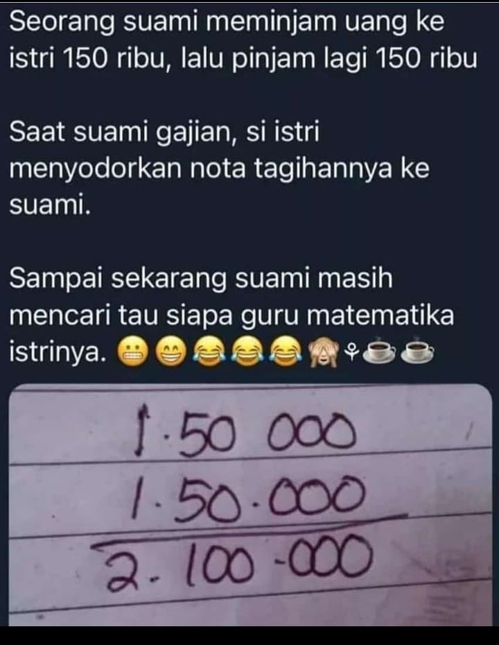 - Disuruh perkalian sampai 10 aja bingung, apalagi ngitung beginian.