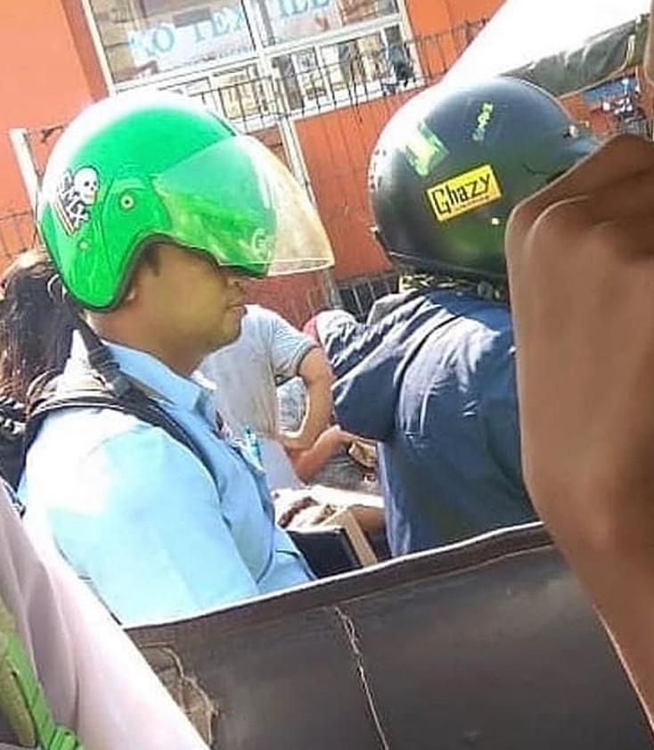 - Kok helmnya gitu?