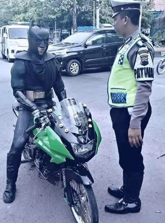 - Udah jadi Batman, tapi tetep ketilang juga.